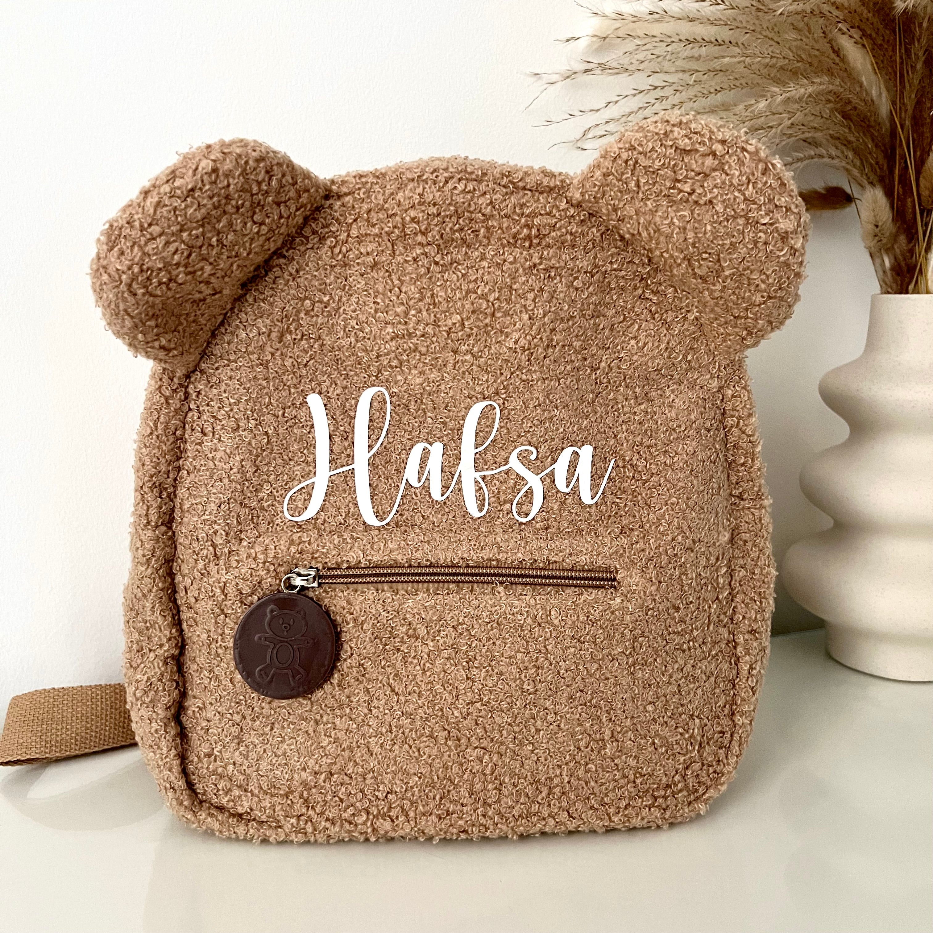 Sac en Toile de Jute avec Pompon Noir et Personnalisé avec Prénom en Calligraphie Arabe sur le coter