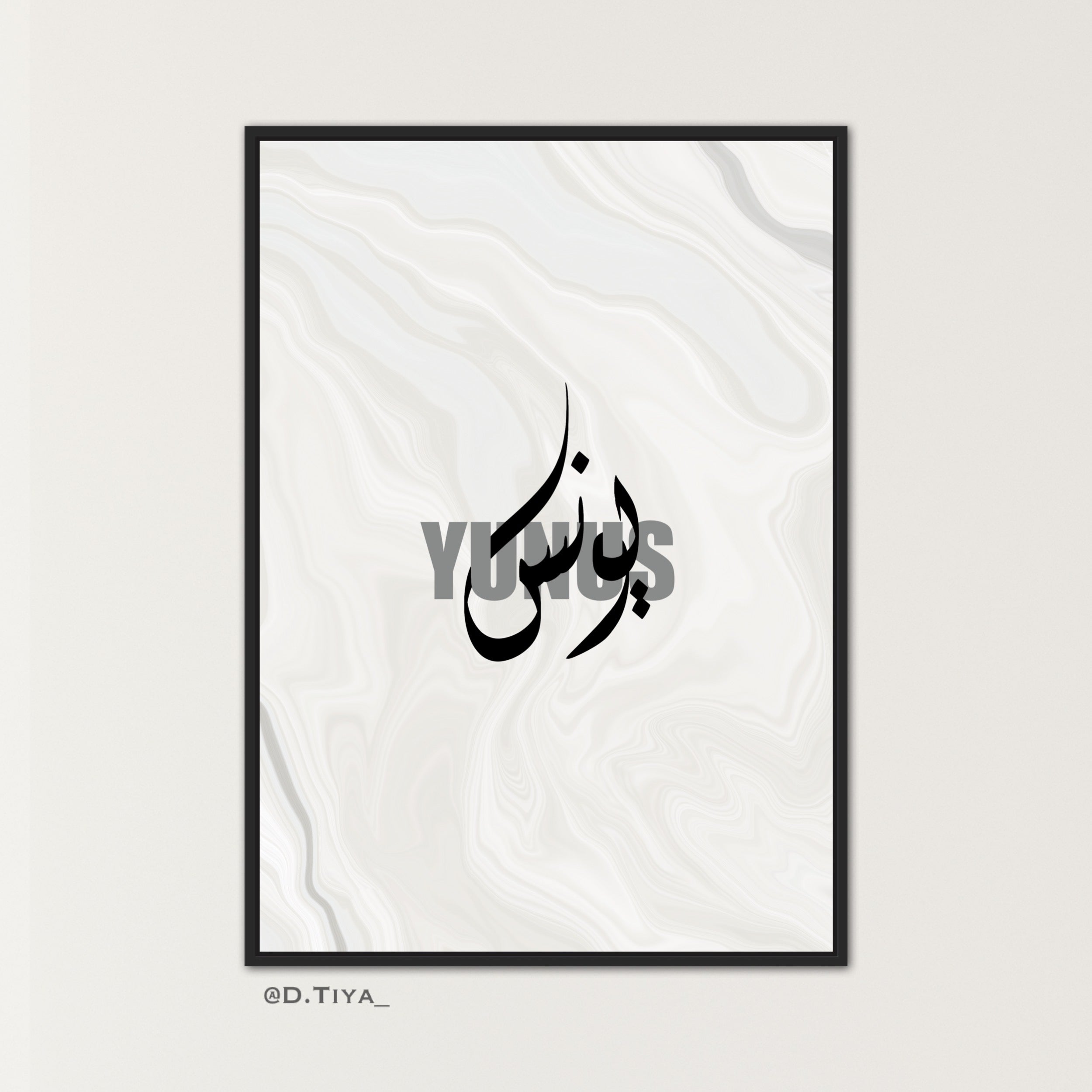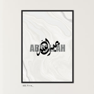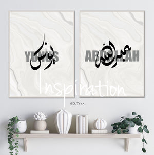 Calligraphie Prenoms entrelacer Arabe et Français sur fond beige et gris effet marbré