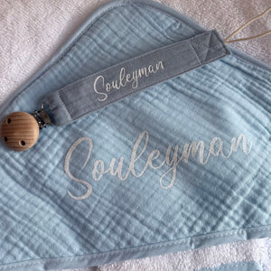 Attache tétine en gaze de coton avec prénom personnalisé