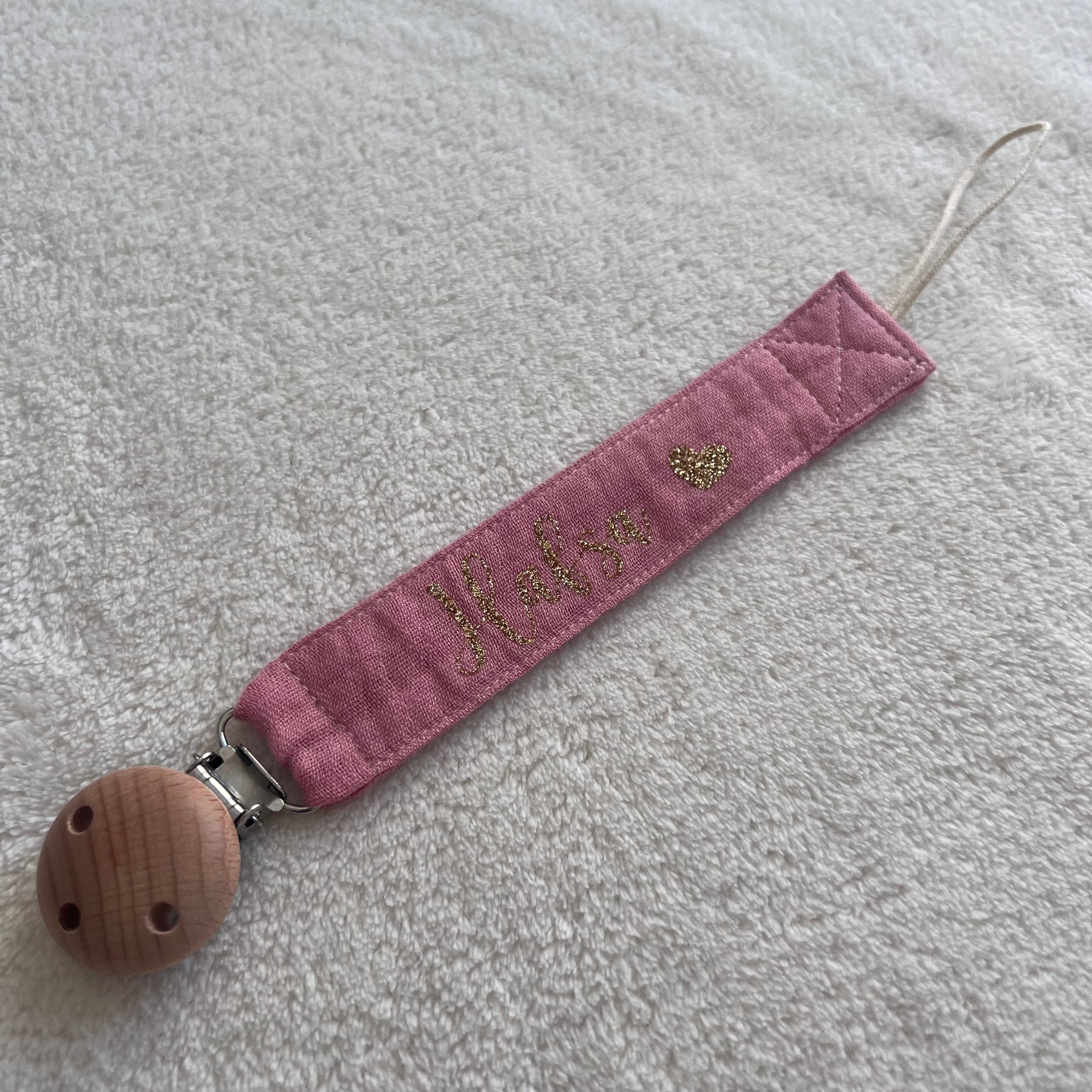 Attache tétine en gaze de coton personnalisée avec prénom