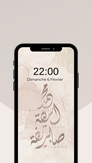 Fond d’écran 3 Prénoms personnalisé en Calligraphie Diwani sur fond encré.