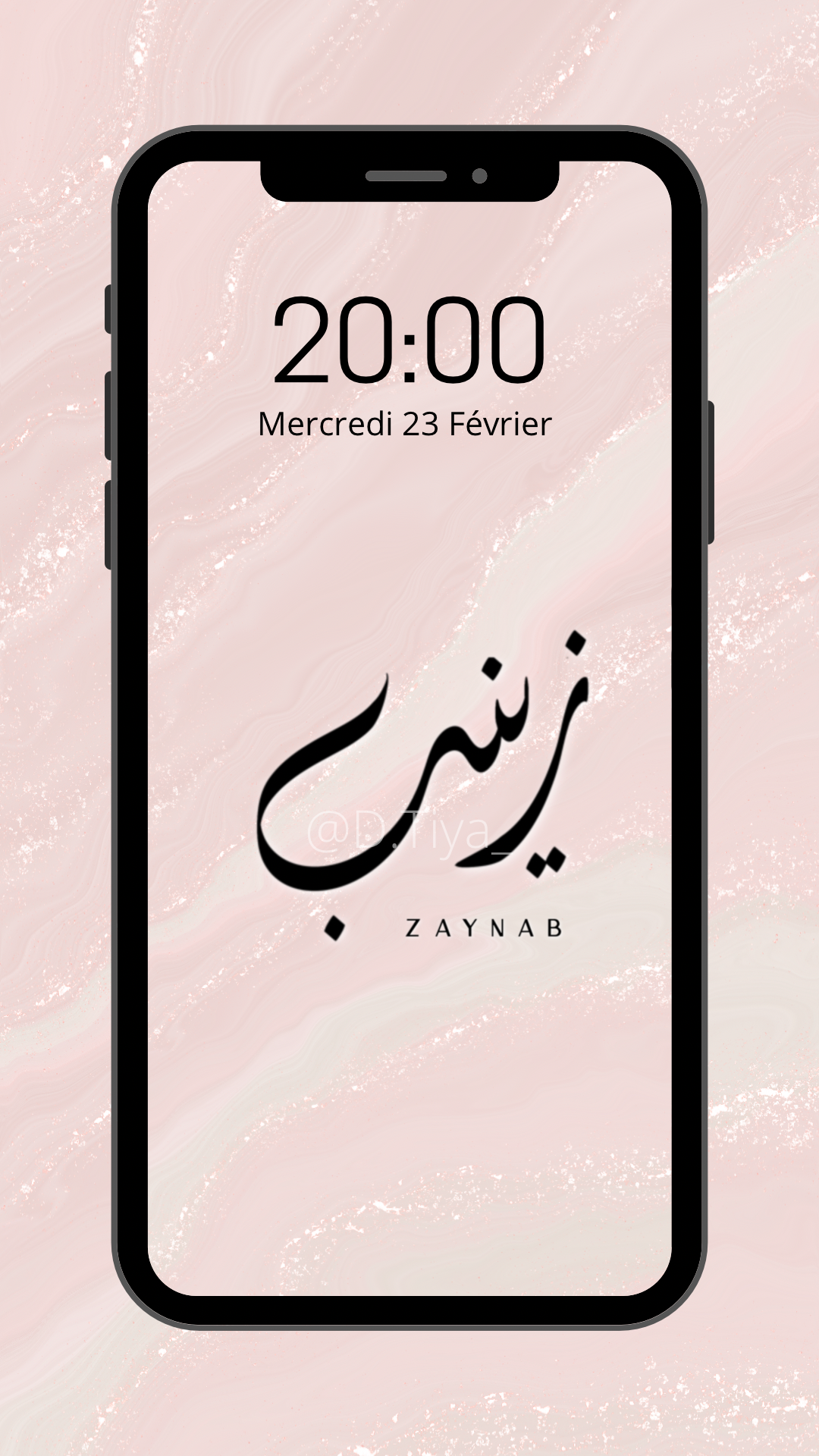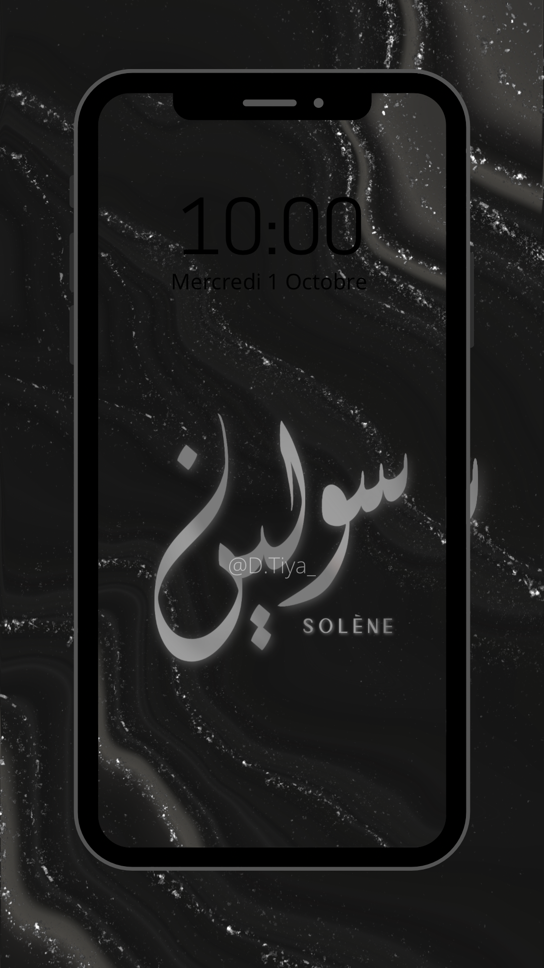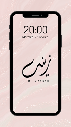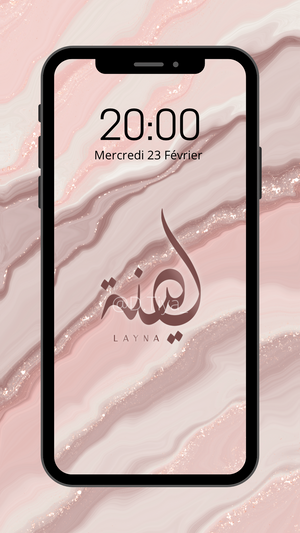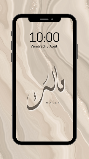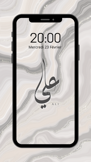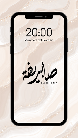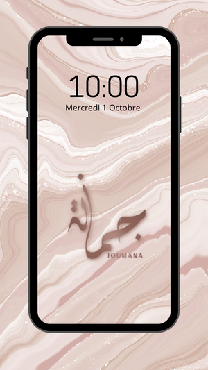 Fond d’écran 1 Prénom personnalisé en Calligraphie Diwani sur fond marbré.