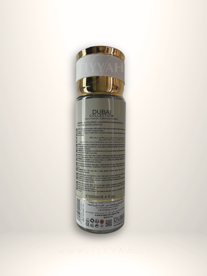 Sa texture légère permet une application généreuse sur le corps, les cheveux ou les vêtements, créant un voile parfumé doux et durable. Son flacon beige et doré, inspiré des créations parfumées de Dubaï, ajoute une touche chic à votre routine beauté.