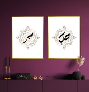 Affiche Hob ( amour ) en Calligraphie Arabe du style Diwani sur Rosace doré Orientale style henné.